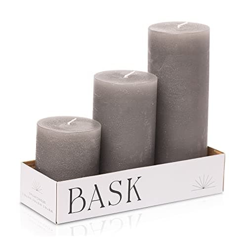 BASK Mottled Unscented Cool Grey Pillar Candles Set of 3 - Dripless Large Smokeless Pillar Candles for All Occasions best from "Bask"